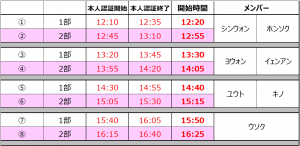 ※両グループとも 本人認証開始10:50 ~ 本人認証終了11:40まで