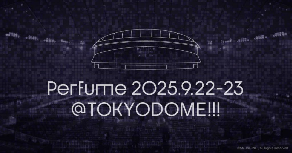 そんな本日、Perfumeが周年の締めくくりとして2025年9月22日(月)、23日(火・祝)に東京ドーム公演2DAYSを行うことを発表!