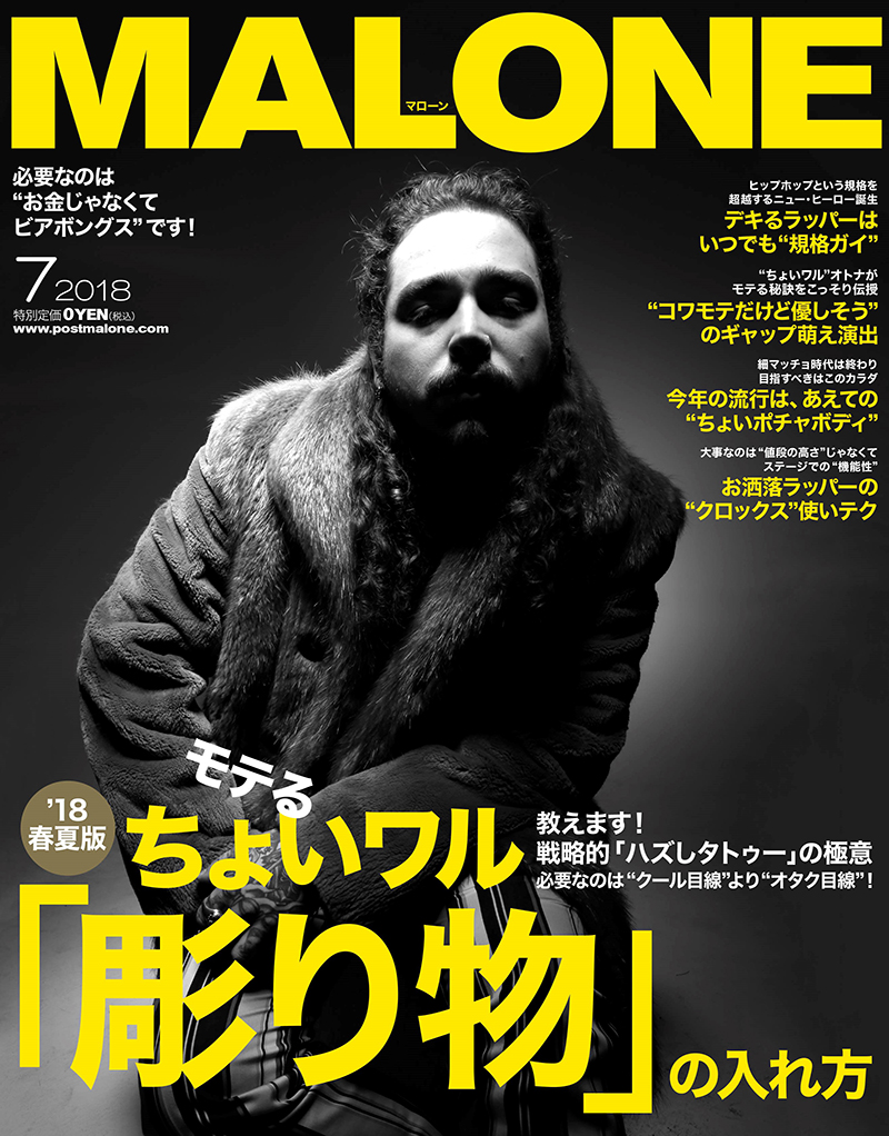 そんな彼の“実像”をお伝えするべく創刊された「週刊ポスト・マローン」ですが、創刊3週目にして早くも廃刊の危機、という情報が飛び込んできました!というのも「週刊ポスト・マローン」に変わって今週登場したのは、なんとファッション誌「MALONE」。「週刊ポスト・マローン」とは180度打って変わったオトナ向けの作りで、ダンディーなライフスタイルを応援する内容。果たして「週刊ポスト・マローン」は復活するのか、それは皆さまの反響(リツイートやシェア)にかかっていますので、ぜひともご支援のほど、宜しくお願いします!