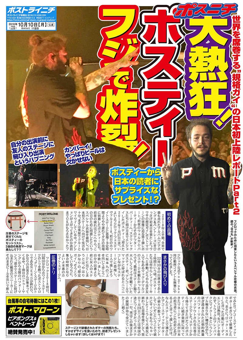 【週刊ポスト・マローン Vol.8(または「ポスニチ」第2号)】世界を席巻する“規格ガイ”の日本初上陸レポートPart2!大熱狂!ポスティー苗場の夜に完全燃焼!