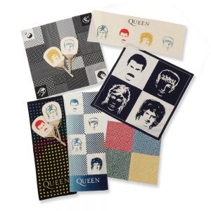 Queenの「Hot Space」をモチーフに、伝統的な唐草や切り継ぎ文様をアレンジしたデザインの風呂敷 3種類と、それぞれのメンバーの顔がデザインされた生地を使用し、持ち手も竹素材を使用した高級感のある団扇が新商品として販売開始となります。
