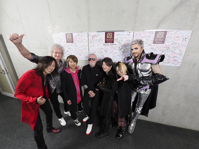 この日、バック・ステージでは、クイーンのブライアン・メイとロジャー・テイラー、そしてアダム・ランバートがGLAYと初対面。写真撮影のときに、ブライアンが「とてもクリアなサウンドで、素晴らしいステージだった」とGLAYのメンバーに話しかけ、GLAYのTAKUROが「僕らのステージ見てくれたんですか?」というと、ブライアンが「もちろん!」と答える一幕もありました。