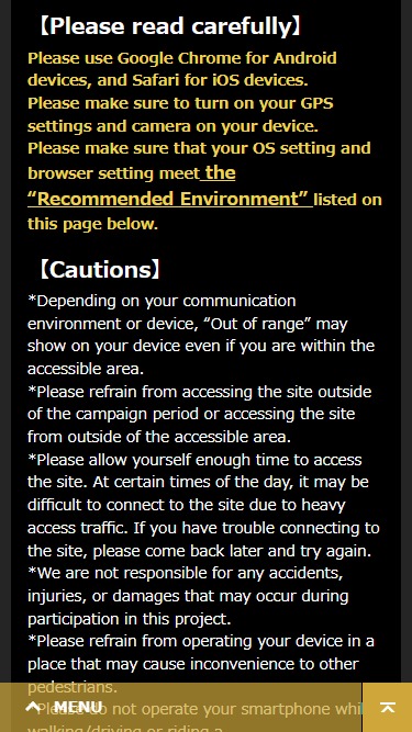 • *Please do not operate your smartphone while walking/driving or riding a car/motorcycle/other vehicles. Please pay close attention to your surroundings and secure a safe space before participating in this campaign.