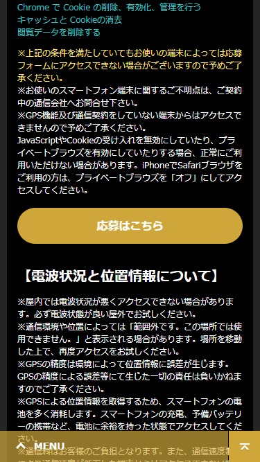 • ※上記の条件を満たしていてもお使いの端末によっては応募フォームにアクセスできない場合がございますので予めご了承ください。