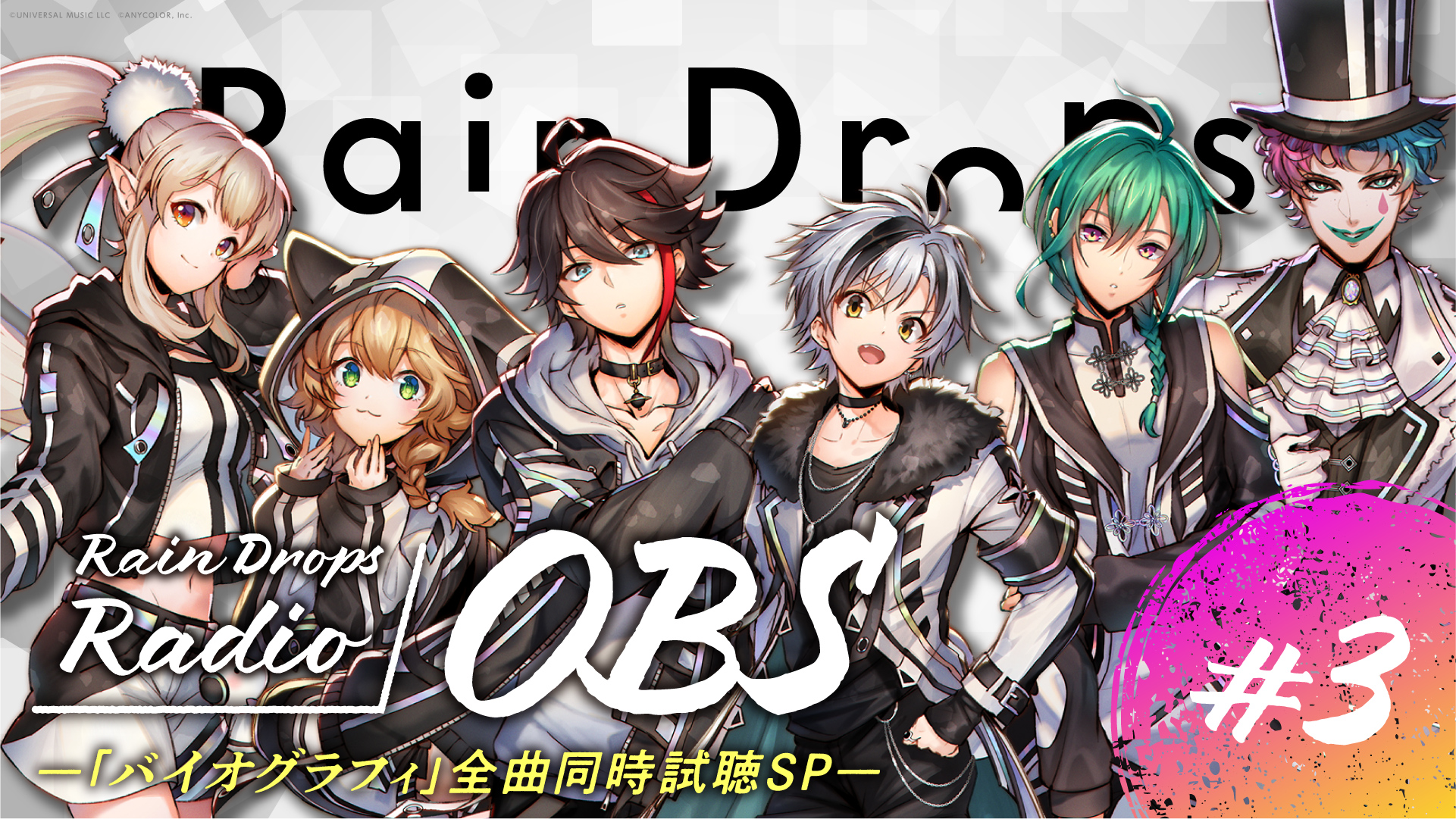 9/21(火)20:00から、にじさんじ公式YouTubeチャンネルよりRain Drops Radio『OBS』#3 〜「バイオグラフィ」全曲同時試聴SP〜」の配信が決定しました!