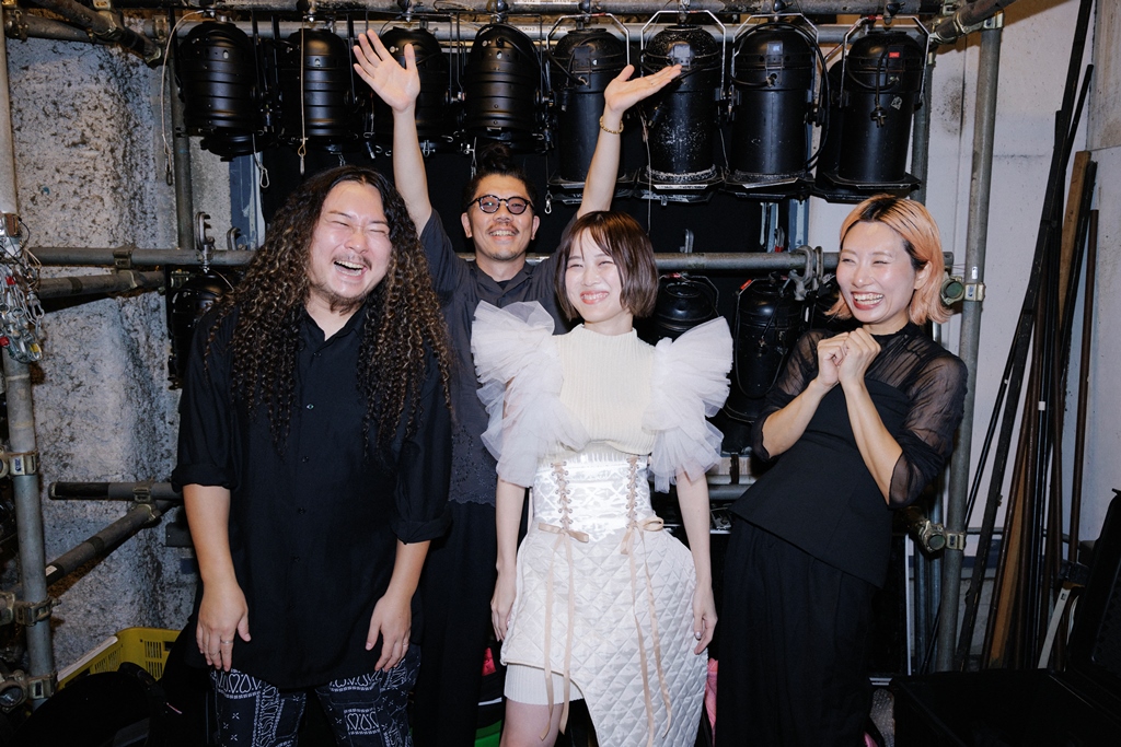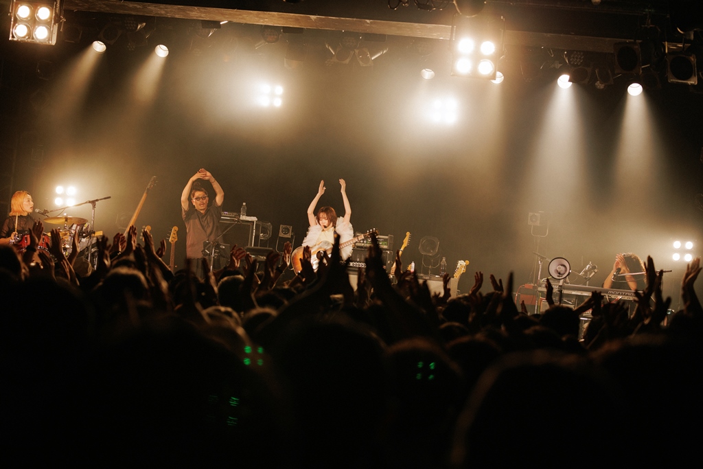 チケットはSOLD OUT。会場が超満員の熱気に包まれる中、今回のツアー・メンバーのYUNA(dr ex.CHAI)、中西道彦(ba)、大樋祐大(kb SANABAGUN.)に続けてReiが登場。冒頭から5曲続けてハイテンションなパフォーマンスを次々と繰り出し、場内のボルテージは一気に最高潮に。