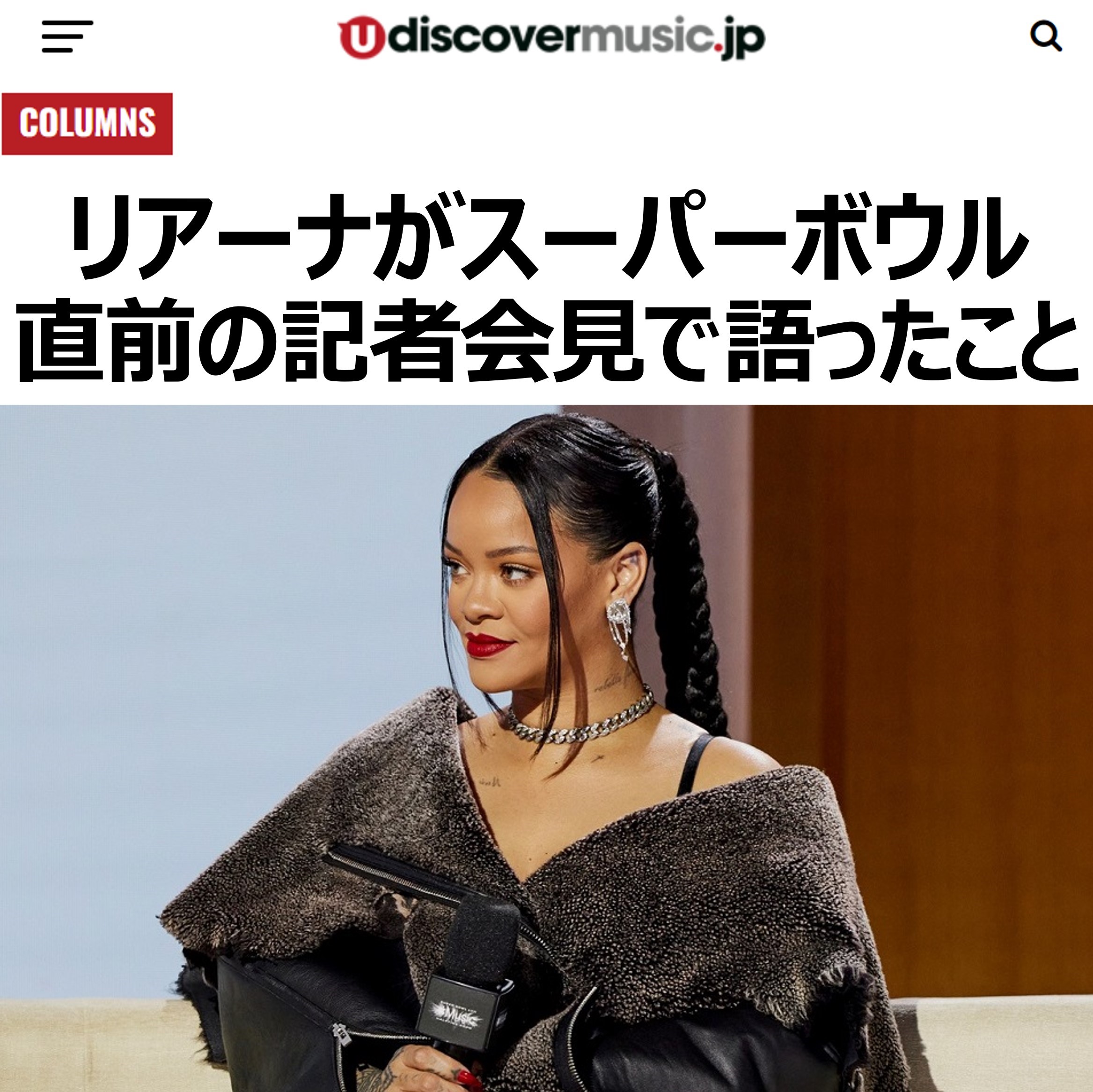 NEWS ALL TOPICS MEDIA LIVE/EVENT 2025.05.16 TOPICS ニュー・シングル「Friend Of Mine (from the Smurfs Movie Soundtrack)」リリース! 2023.02.21 MEDIA - WEB Podcast『高橋芳朗 & ジェーン・スー 生活が踊る歌』にてリアーナが特集 2023.02.16 TOPICS スーパーボウル ハーフタイムショー出演効果、リアーナの楽曲が世界で上昇中 2023.02.15 MEDIA - WEB 【全曲徹底解説】リアーナのスーパーボウル ハーフタイムショー:世界は、リアーナを愛している 2023.02.13 TOPICS スーパーボウル ハーフタイムショーが全編公開中! 2023.02.13 TOPICS 「ぜんぶ知ってる洋楽 2010’s +」配信中! 2023.02.10 TOPICS 【全文】スーパーボウル ハーフタイムショーの記者会見で語った事 2023.02.08 TOPICS スーパーボウル ハーフタイムショー出演記念、リアーナのアルバムのダウンロードが期間限定プライスオフ 2023.02.03 TOPICS Digsterプレイリスト「リアーナ 2023/02/13 ハーフタイムショー」を公開 2023.02.01 MEDIA - WEB 【解説】スーパーボウル ハーフタイムショーに出演するリアーナは改めて何が凄いのか? 12345…17123…17