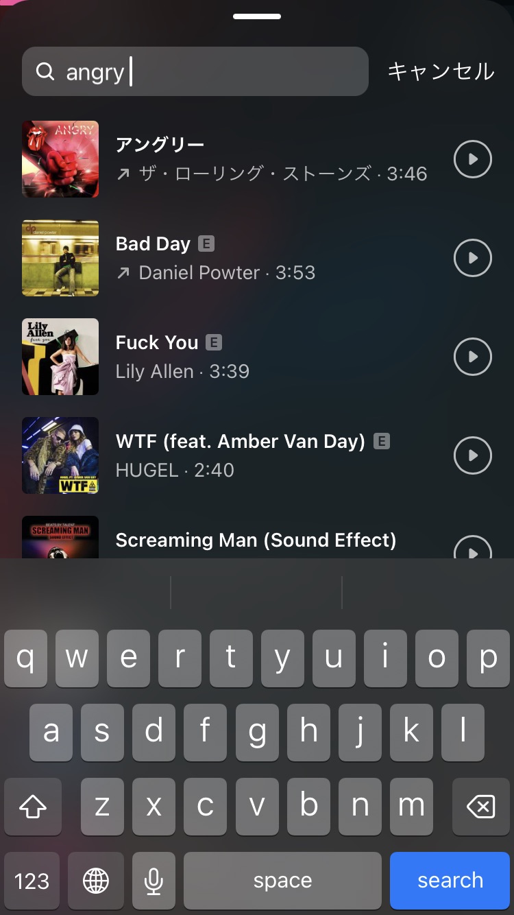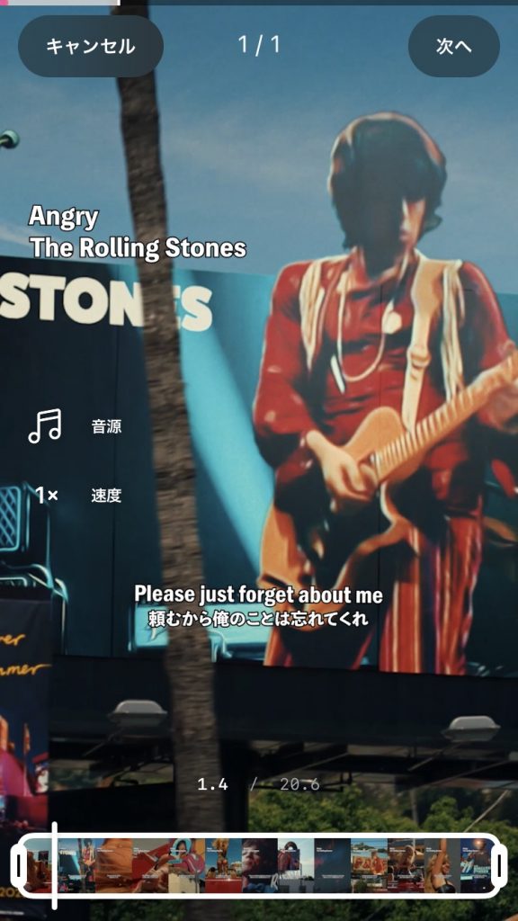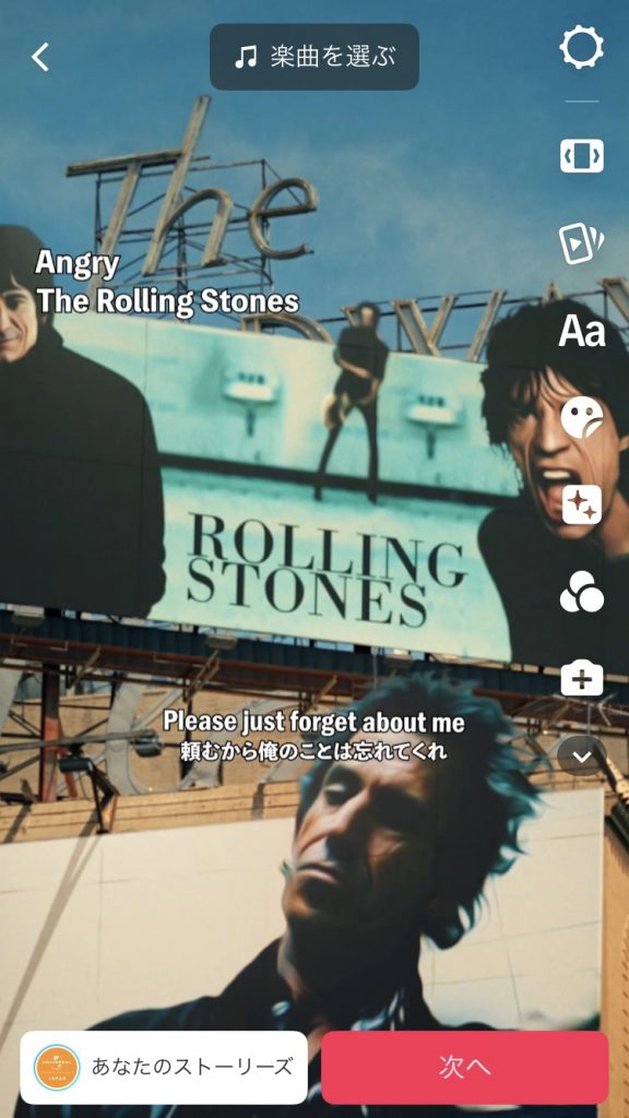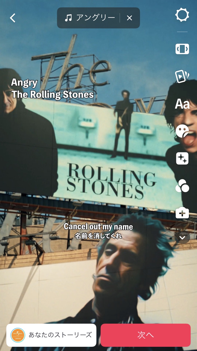 ②画面上の「♬」をタップして、ザ・ローリング・ストーンズ「アングリー」を検索して選択