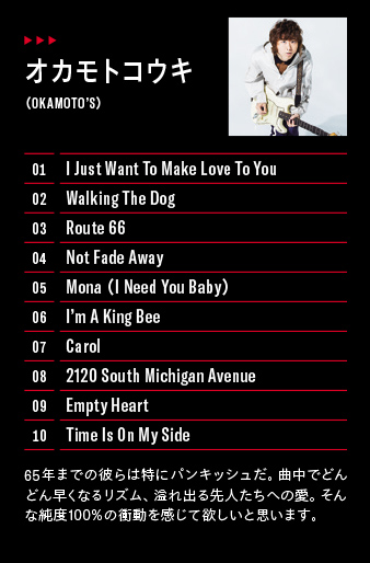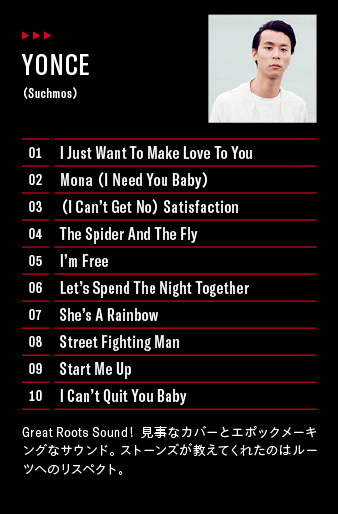 ストーンズの新作『オン・エア』に合わせて、ミュージシャンの皆さんにBBCのディレクターになったつもりでストーンズに演奏してもらいたい10曲を選んでもらったオン・エア・リスト。 (*楽曲タイトルの英語・日本語は各アーティストの意向によります。)五十音順