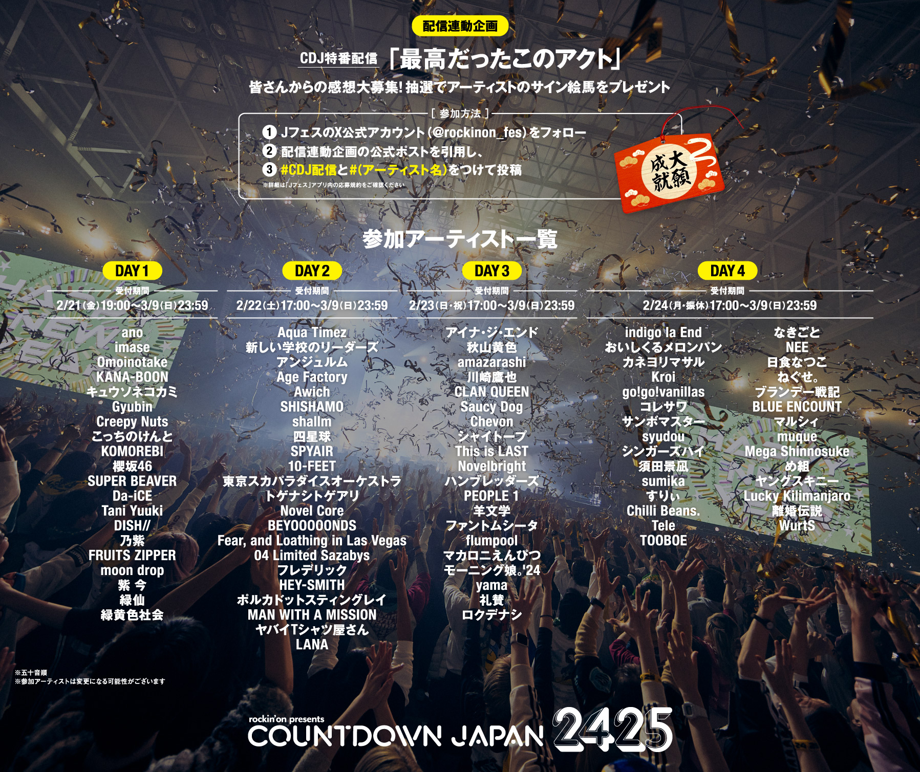 JAPAN 24/25 YouTube配信のタイムテーブル発表!公式Xでは抽選でアーティストのサイン絵馬をプレゼント!!
