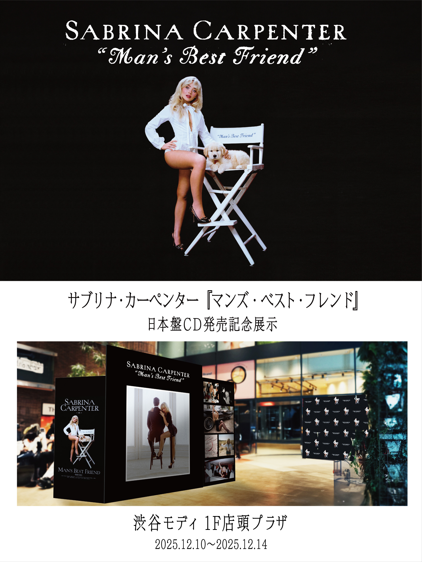 グラミー賞受賞アーティストであるサブリナ・カーペンターの最新アルバム『マンズ・ベスト・フレンド』の日本盤リリースを記念した展示が、12月10日(水)から12月14日(日)までの5日間、渋谷モディにて開催されることが決定した。