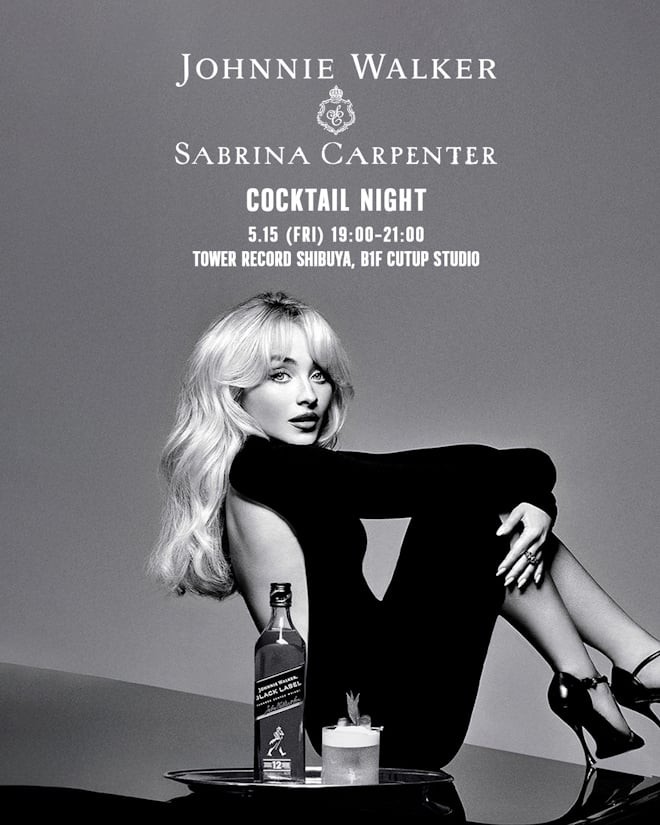 グラミー賞受賞アーティストであるサブリナ・カーペンターの27歳の誕生日(5月11日)を記念して、一夜限りのイベント「JOHNNIE WALKER × Sabrina Carpenter Cocktail Night」(※)を5月15日(金)19:00~21:00、タワーレコード渋谷店 B1F CUTUP STUDIOにて開催することが決定した。