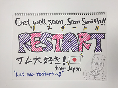 「サム、喉を直して早く”リスタート”してね」や「早くまた日本に来て、歌を聴かせてね」など、思いの丈をビデオに乗せて届けましょう!