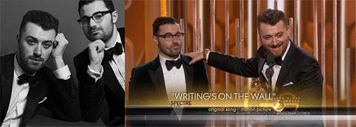 サム・スミスが、「ライティングズ・オン・ザ・ウォール(映画『007 スペクター』主題歌)」にて、第73回ゴールデン・グローブ賞の”Best Original Song”(最優秀楽曲賞)を見事受賞しました!