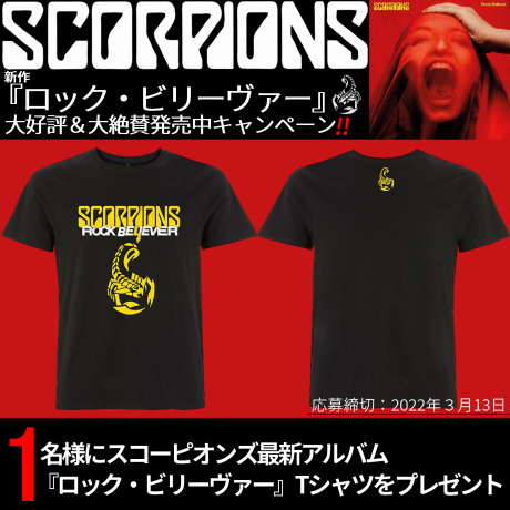 スコーピオンズの最新アルバム『ロック・ビリーヴァー』の発売を記念してTwitterにてTシャツプレゼント企画を実施!