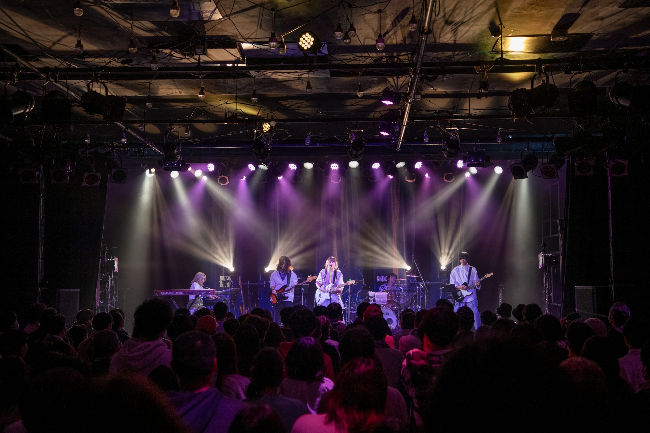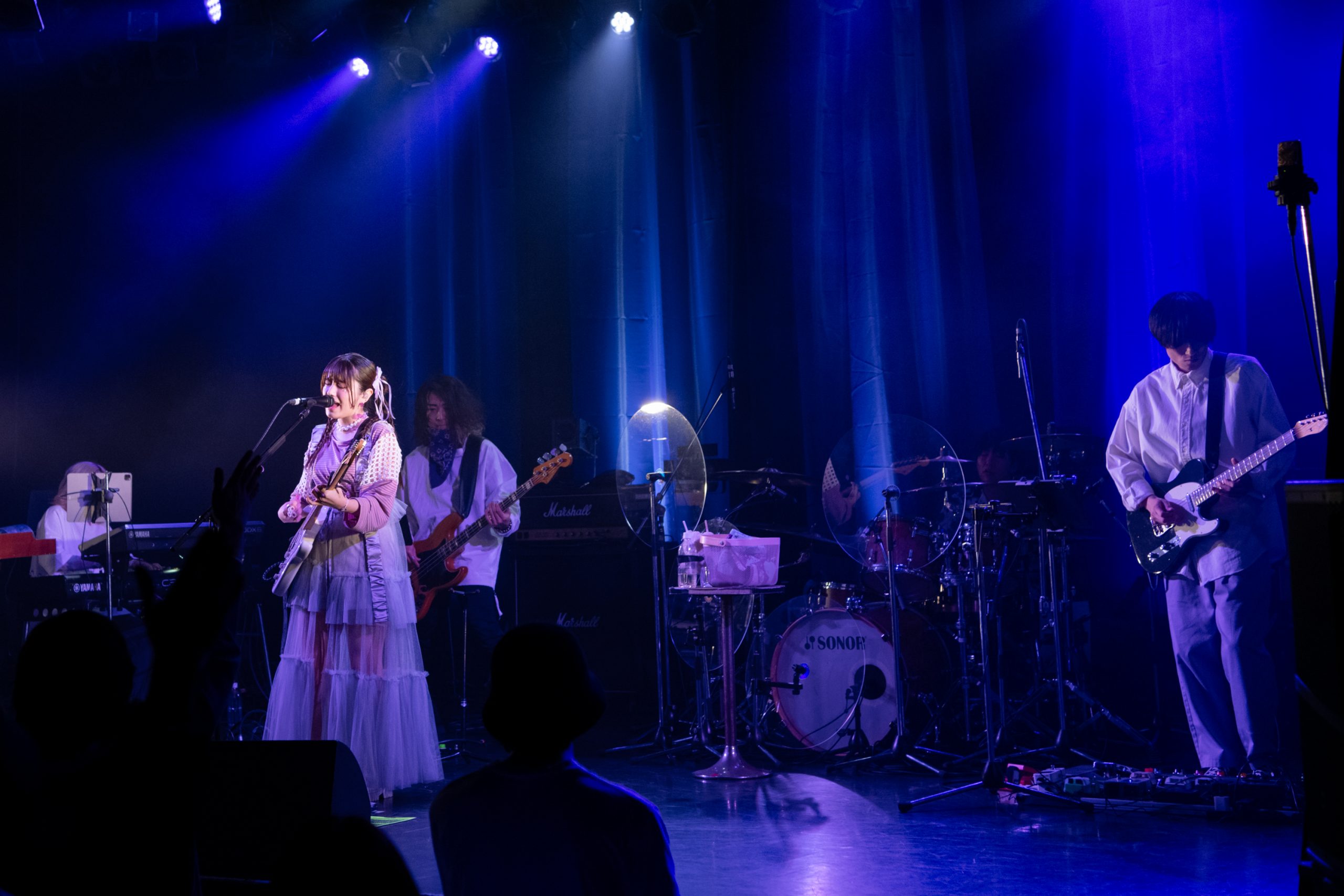 そう言って演奏したのは、昨年1月にリリースされた1stデジタルEP『酸いも甘いも青も春も』より「真白の空」。メランコリックなメロディに乗せて、〈今日という日は永遠に戻ってこない〉〈青春なんて一瞬で終わってしまう〉と歌うストレートな歌詞が心を射抜く。