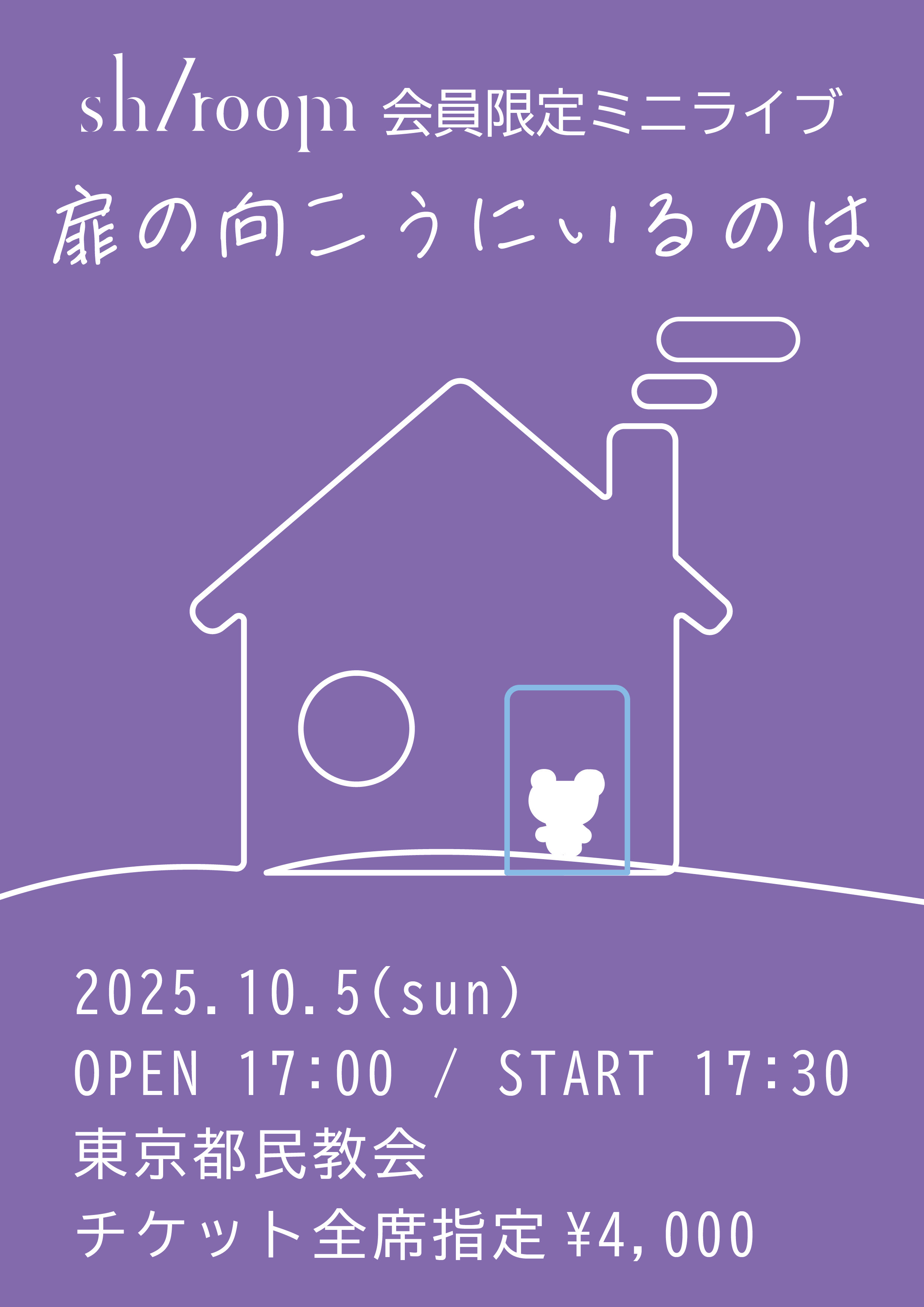 さらに、『sh/room』会員限定ミニライブ「扉の向こうにいるのは」を東京都民教会にて実施することが決定!