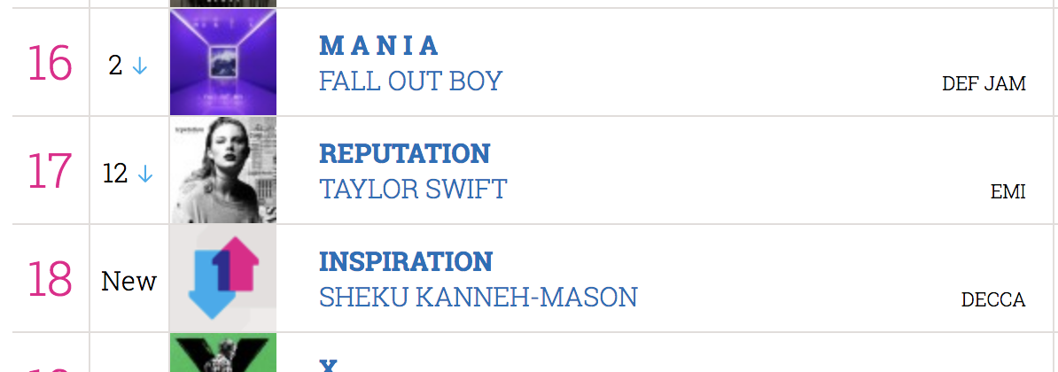 『インスピレーション』2/2付全英アルバムチャート初登場18位獲得! 2018.02.05 TOPICS デビューアルバム『インスピレーション』2/2付全英アルバムチャート初登場18位獲得! http://www.officialcharts.com/charts/albums-chart/ 2018年、最も売れているイギリス人アーティスト・アルバムとして現地で話題になっています。