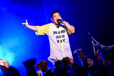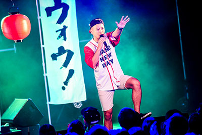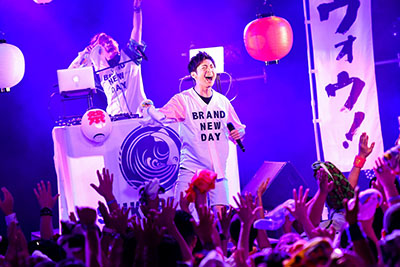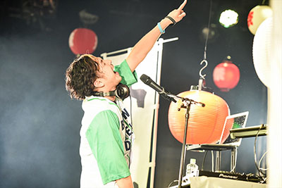 爽やかな「風まかせ」や「エンドレスサマー」など、夏らしい楽曲で畳み掛ける。アクティブにパフォーマンスするフロントの3人に引き寄せられように、オーディエンスも手を掲げ、身体を弾ませ、タオルをプロペラのように勢いよく回したりと、楽曲に合わせた楽しみ方で一体感を作り出していく。夏祭りということでアップチューン多めのセットリストということもあり、終始お祭り騒ぎな盛り上がりで会場の熱気もどんどん高まっていく。