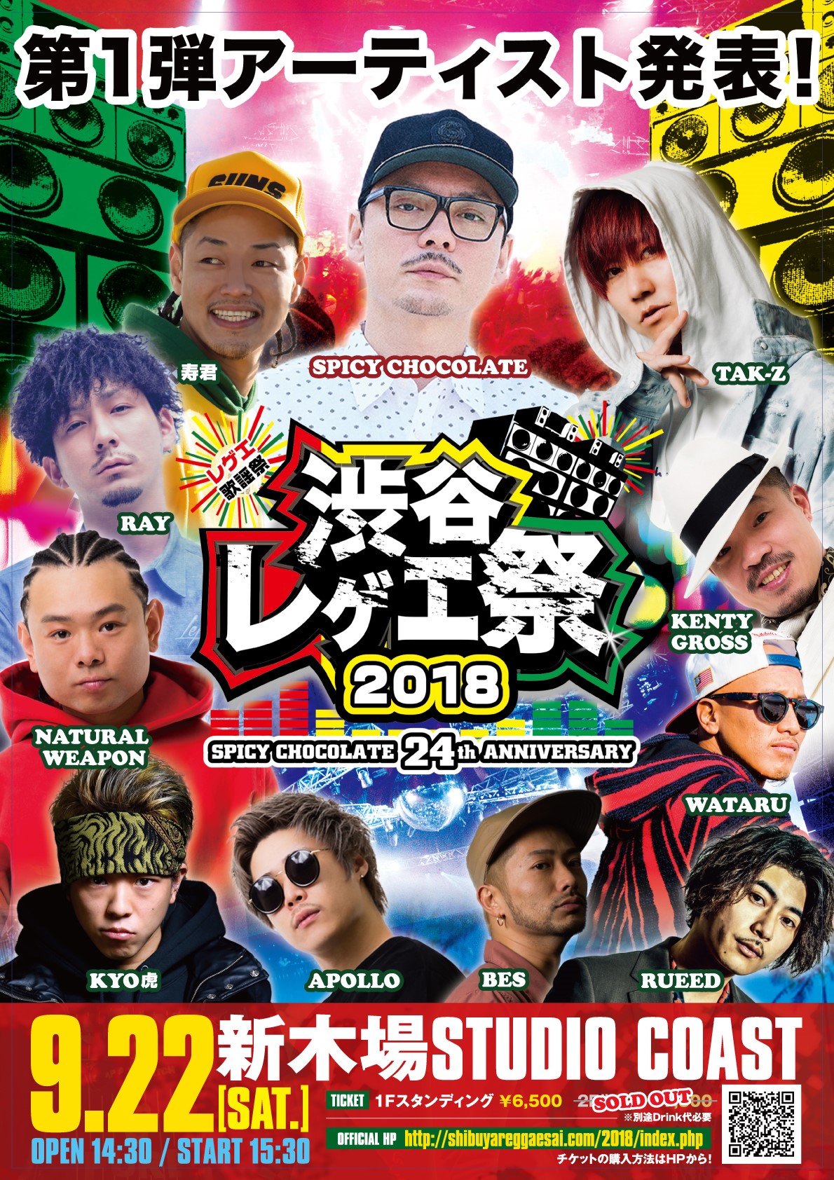 SPICY CHOCOLATE主催「渋谷レゲエ祭〜レゲエ歌謡祭2018〜」第一弾出演アーティスト発表!