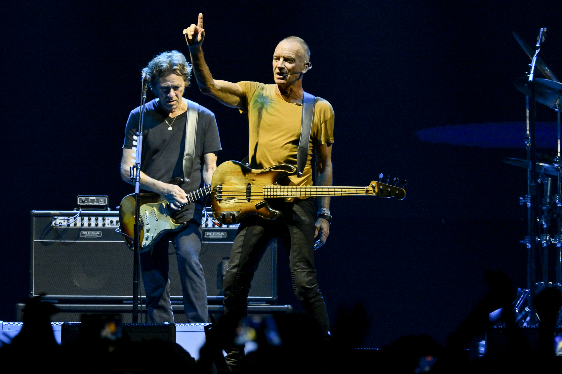このあと「ルーズ・マイ・フェイス・イン・ユー」、「イングリッシュマン・イン・ニューヨーク」、「マジック」とつづき、数年前からヘッドセット・スタイルのマイクを使うようになっているスティングは(つまり、マイク・スタンドの前に立つ必要がないということだ)、ステージの上を大きな歩幅で動き回りながら、オーディエンスをどんどん引き込んでいく。そして、ここで3人はぐっとテンポを落とし、ドミニク・ミラーの繊細なギターを大きくフィーチャーして「フィールズ・オブ・ゴールド」を聞かせてくれた。イングランド南西部の田園地帯、大麦畑の上を渡る風が感じられるような、あのなんとも美しい曲だ。