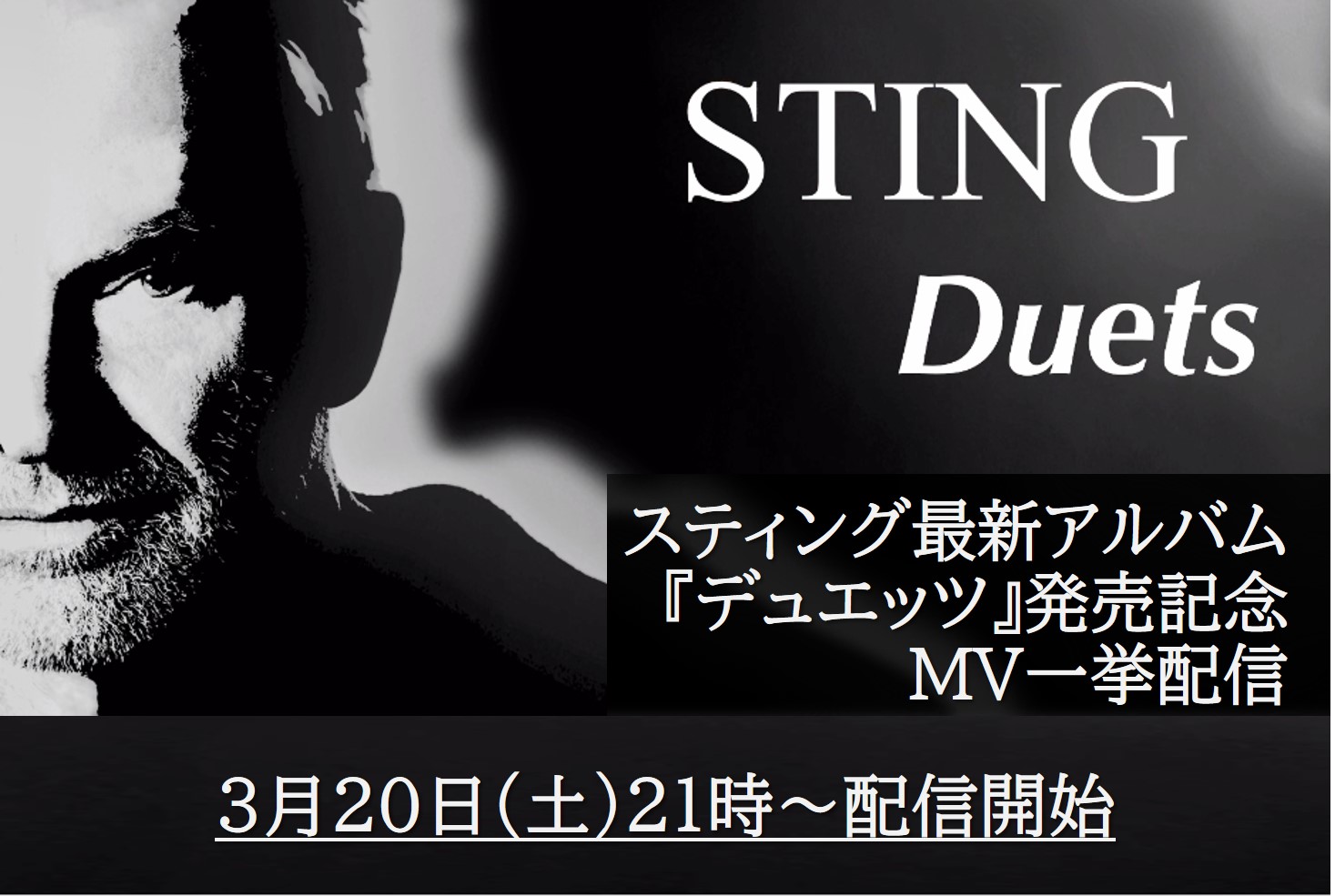 NEWS ALL TOPICS MEDIA LIVE/EVENT 2021.03.19 TOPICS ニュー・アルバム『デュエッツ』本日発売!「イングリッシュマン/アフリカン・イン・ニューヨーク with シェラージー」のミュージック・ビデオが公開! 2021.03.18 TOPICS 『デュエッツ』発売記念!YouTubeにて過去MV一気見が決定! 2021.03.17 TOPICS 『デュエッツ』収録曲「イン・ジ・ウィー・スモール・アワーズ with クリス・ボッティ」のパフォーマンス映像が公開! 2021.03.11 TOPICS 亀田誠治さん、クリス・ペプラーさん、クリス松村さん、サッシャさん、布袋寅泰さんからコメントをいただきました! 2021.03.11 TOPICS 新作『デュエッツ』から「マイ・ファニー・ヴァレンタイン with ハービー・ハンコック」が先行配信リリース 2021.03.06 TOPICS 『デュエッツ』購入者の中から“スティングがあなたに呼びかけてパフォーマンスを披露するスペシャル映像の視聴権”が当たるキャンペーンが決定! 2021.03.02 TOPICS 『デュエッツ』グローバル特設サイトが公開 2021.02.15 TOPICS アルバム『デュエッツ』に新曲「イングリッシュマン/アフリカン・イン・ニューヨーク with シェラージー」がボーナス・トラックとして収録決定 2021.02.15 TOPICS 『デュエッツ』CDショップ別先着購入者特典決定! 2021.01.15 TOPICS 1991年のアルバム『ソウル・ケージ』30周年記念エディション配信リリース!初デジタル化7曲を含む13曲のボーナス・トラック収録! 123456789…141…34567…14