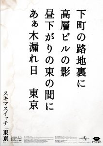 「東京」の歌詞を胸にプリントした直球のメッセージが目を引く斬新なデザイン。