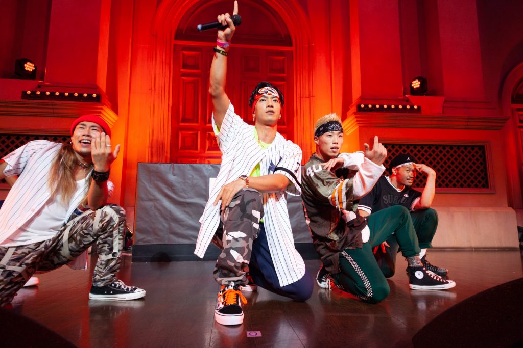 ステージにはDJ Kekkeもスタンバイし、「intro」から「MANZANA」が流れ、SWAYとダンサー4人のパフォーマンスがスタートし、ファンからは歓喜の声が上がる。「りんごをもぎ取るポーズ」として話題の”りんごダンス”をファンも一緒に踊って会場に一体感が生まれた。