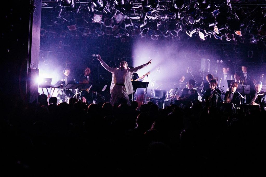 舞台上に今回高岩と共にアルバムを作り上げたTokyo RecordingsのYaffleが登場し、フランク・シナトラ「I’ll Never Smile Again」をサンプリングしたクラブサウンドのトラックが流れ、アルバム10曲目収録の「I’m Gonna Live Till I Die」で披露される高岩の“語り”部分に変化していくと、会場からは笑顔と期待に溢れた声が湧き起こり、28歳以下で構成されたというビッグバンドのメンバー総勢17名がステージに現れた。最後に、満を持して登場した高岩の姿はシルバーに染められた髪の毛、ファッションブランドCHRISTIAN DADAのオーダーメイドという真っ白のスーツという姿であり、その衝撃的なビジュアルに会場は大きな驚きと盛大な拍手に包まれた。そんな大歓声のなか、高岩が敬愛するフランク・シナトラのレパートリーでもある「I’m Gonna Live Till I Die」と「Too Close For Comfort」でスタート。ビッグバンドに合図を送りながら歌唱する姿は歴代のエンターテイナーたちに通じるような貫録を感じさせた。