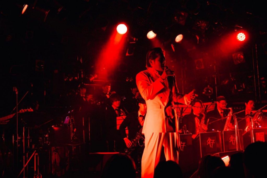 舞台上に今回高岩と共にアルバムを作り上げたTokyo RecordingsのYaffleが登場し、フランク・シナトラ「I’ll Never Smile Again」をサンプリングしたクラブサウンドのトラックが流れ、アルバム10曲目収録の「I’m Gonna Live Till I Die」で披露される高岩の“語り”部分に変化していくと、会場からは笑顔と期待に溢れた声が湧き起こり、28歳以下で構成されたというビッグバンドのメンバー総勢17名がステージに現れた。最後に、満を持して登場した高岩の姿はシルバーに染められた髪の毛、ファッションブランドCHRISTIAN DADAのオーダーメイドという真っ白のスーツという姿であり、その衝撃的なビジュアルに会場は大きな驚きと盛大な拍手に包まれた。そんな大歓声のなか、高岩が敬愛するフランク・シナトラのレパートリーでもある「I’m Gonna Live Till I Die」と「Too Close For Comfort」でスタート。ビッグバンドに合図を送りながら歌唱する姿は歴代のエンターテイナーたちに通じるような貫録を感じさせた。