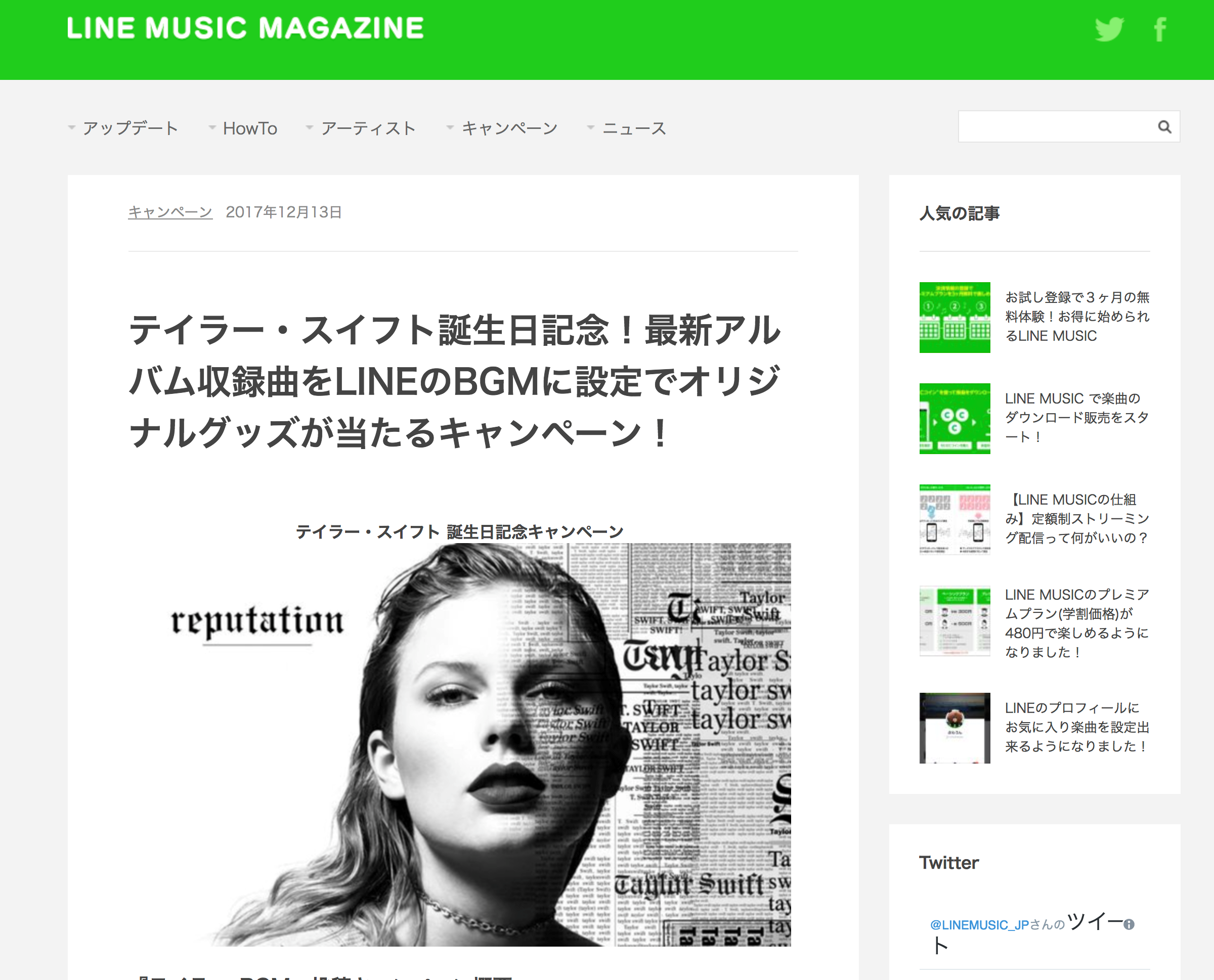 テイラー・スイフト誕生日記念!最新アルバム収録曲をLINEのBGMに設定でオリジナルグッズが当たるキャンペーン!実施中