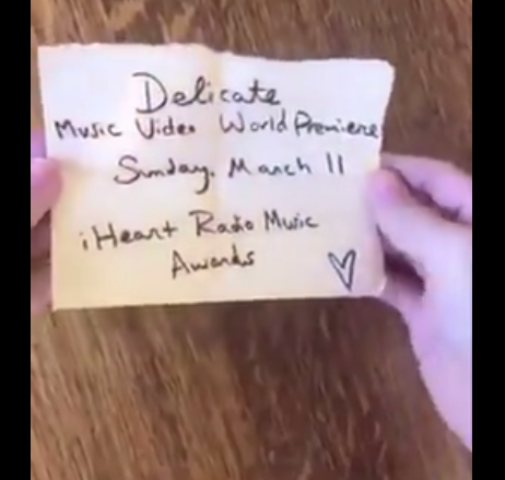 テイラーの新作『レピュテーション』より、ニュー・シングルとなる「デリケート」のミュージックビデオがアメリカ時間3月11日(日)iHeart Radio Music Awardsにて解禁されるとテイラーのSNSにて発表されました!