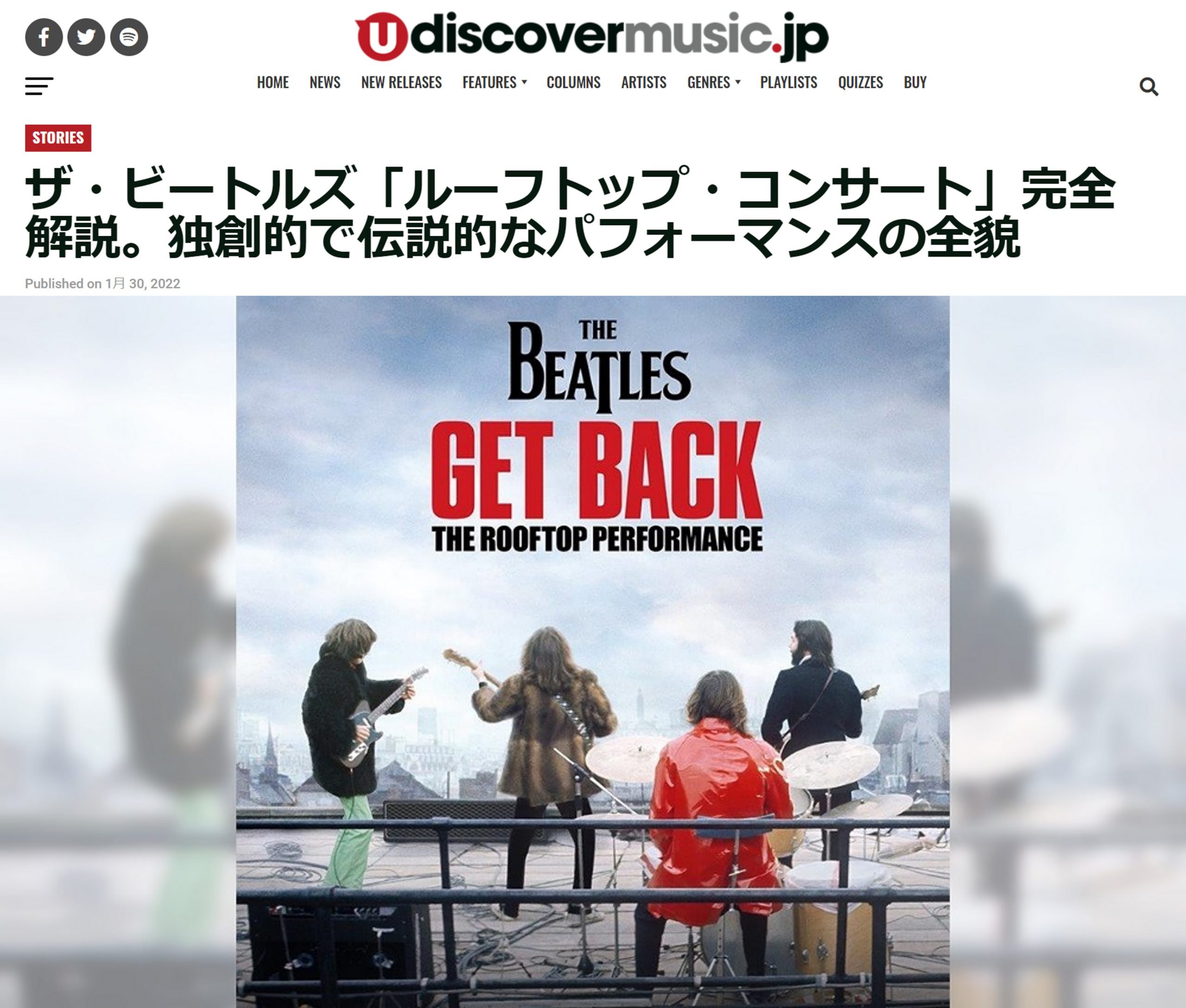 NEWS ALL TOPICS MEDIA LIVE/EVENT 2022.02.18 TOPICS 『ザ・ビートルズ Get Back: ルーフトップ・コンサート』満席スクリーン続出!ビートルズ・ファンの熱い要望に応え、 2月25日(金)よりアンコール追加上映が決定!! 2022.02.10 TOPICS 『ザ・ビートルズ Get Back: ルーフトップ・コンサート』をIMAX®限定公開記念、ザ・ビートルズの圧巻のルーフトップ・コンサートの演奏シーンが解禁! 2022.02.08 TOPICS 『レット・イット・ビー / ゲット・バック』両面ジャケット・ポスターが劇場での購入特典に決定! 2022.02.07 TOPICS ザ・ビートルズの公式ポスター、劇場での期間限定販売が決定! 2022.02.02 TOPICS 『レット・イット・ビー』スペシャル・エディションについて和田 唱さんからのコメント掲載! 2022.01.31 TOPICS 『ザ・ビートルズ:Get Back-ザ・ルーフトップ・コンサート』告知ポスター発売決定! 2022.01.31 TOPICS 『ザ・ビートルズ Get Back: ルーフトップ・コンサート』、2/9〜2/13 IMAX®で限定公開 2022.01.31 MEDIA - WEB 【uDiscovermusic記事】「ルーフトップ・コンサート」完全解説 2022.01.27 TOPICS 『ザ・ビートルズ:ゲット・バック-ザ・ルーフトップ・パフォーマンス』音声を新規リミックスした完全版のストリーミング配信が全世界でスタート 2022.01.14 TOPICS 「ルーフトップ・コンサート」のワン・シーンがB2ポスターに!THE BEATLES STOREにてご予約受付開始! 1…141516171819202122…531…1617181920…53