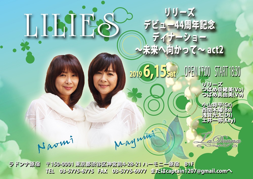 今年6月、デビューから44年を迎えるリリーズの記念ライブのご案内