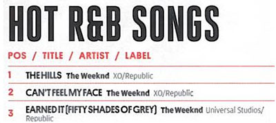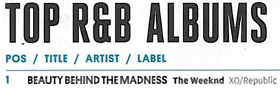 今年の全米R&Bチャート独占! 2015.12.19 TOPICS 今年の全米ビルボードR&Bアルバム・チャートにて、ザ・ウィークエンドの『ビューティー・ビハインド・ザ・マッドネス』がナンバー1アルバムに! そして、今年の全米ビルボードR&Bシングル・チャートにて、ザ・ウィークエンドの『ビューティー・ビハインド・ザ・マッドネス』に収録されている楽曲がTOP3を独占!