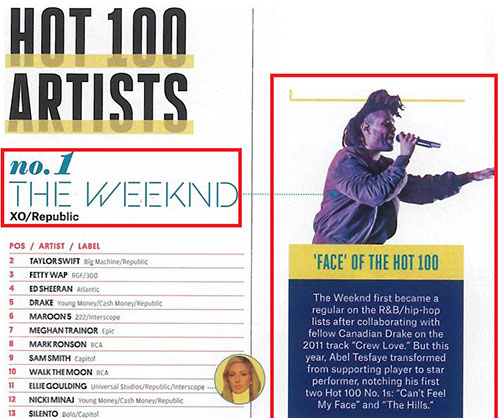 ザ・ウィークエンドが、今年の全米シングル・チャートの顔になりました!