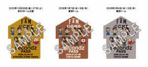 12/26(金)より開催される「We’re timelesz LIVE TOUR 2025-2026 episode 1 FAM DOME」各会場のCD・映像商品販売ブースにて、取扱商品を1会計3,000円(税込)以上ご購入いただいたお客様に先着で”ツアーパス風secondz布ステッカー”を1枚プレゼントいたします。