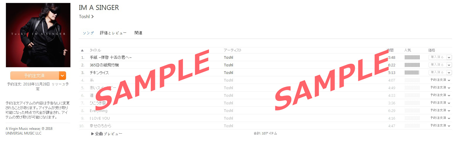 Toshl 「IM A SINGER」 iTunes予約注文受付中! Twitterで、Toshl直筆あなたのお名前入りサインポスタープレゼントの特別企画を実施!