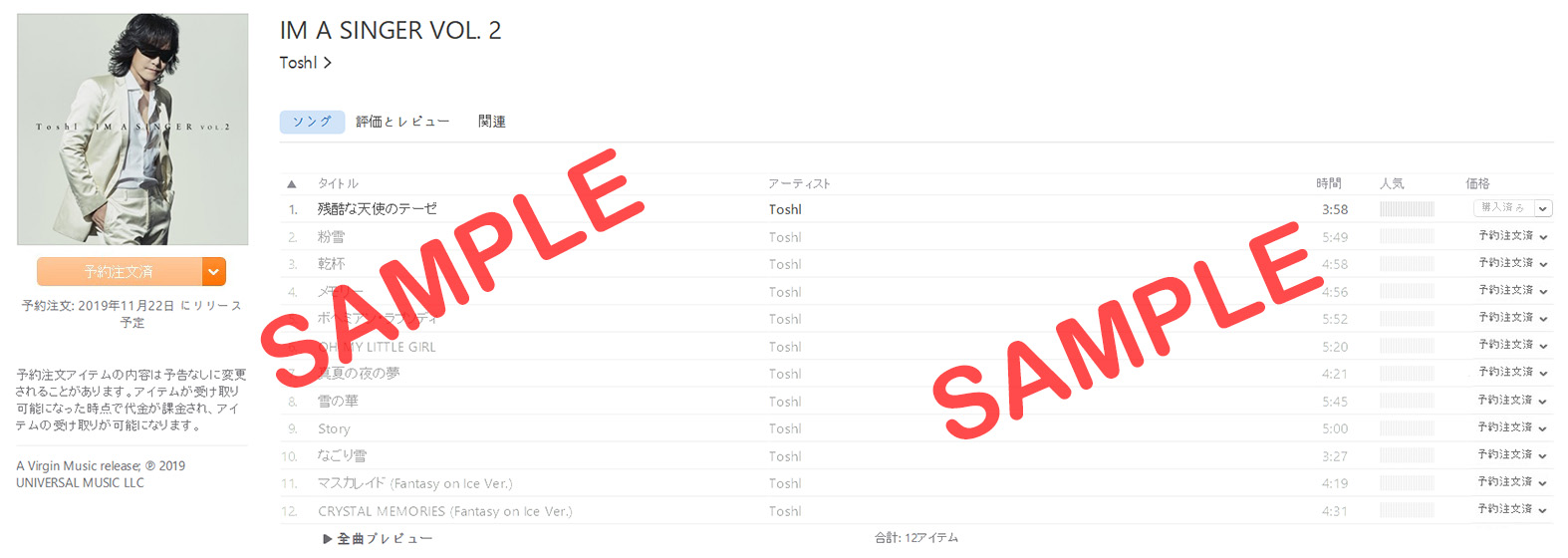 Toshl 「IM A SINGER VOL. 2」 iTunes予約注文受付中! Twitterで、Toshl直筆あなたのお名前入りサインポスタープレゼントの特別企画を実施!