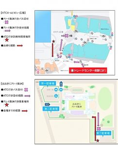 ●当日は、「おおきにアリーナ舞洲」および「ATCホールピロティー広場」のシャトルバス受付までお越しください。