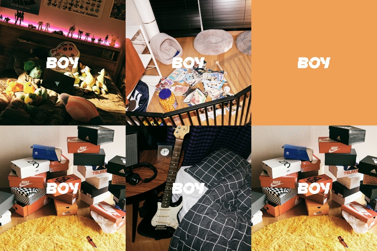 ムードティーザーには「BOY」という文言とともに積みあがっている宅配便の箱、食べ物が並んでいる食卓、ヘッドセットがおかれたベッド、柵の中に積みあがっている漫画、フィギュアと人形でいっぱいのベッドが見えて好奇心を引き出した。続いて公開されたソロコンセプトフォトで明らかになった疑問の空間は、まさにメンバーが日常を過ごす場所。