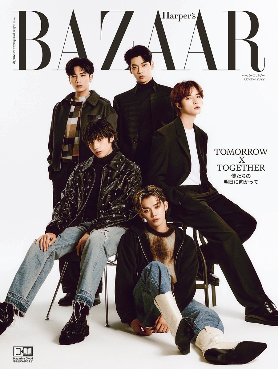 TOMORROW X TOGETHER(SOOBIN、YEONJUN、BEOMGYU、TAEHYUN、HUENINGKAI)は日本ファッションマガジン「ハーパーズバザージャパン」特別版10月号を通じてダークな魅力が際立つグラビアの一部を公開した。 「CREATE THE FUTURE」をテーマにしたグラビアで、5人のメンバーはブラックのカラーコードの下にスーツとレザージャケット、レオパードとスクエアパターンのニットなど多様なファッションアイテムでそれぞれ個性を現した。 特に、TOMORROW X TOGETHERの眩しいビジュアルと絶妙なバランスが目を引いた。