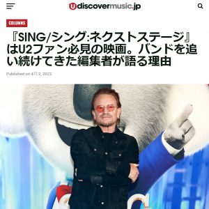 NEWS ALL TOPICS MEDIA LIVE/EVENT 2022.04.04 MEDIA - WEB 【uDiscovermusicコラム】『SING/シング:ネクストステージ』はU2ファン必見の映画。バンドを追い続けてきた編集者が語る理由 2022.03.22 MEDIA - WEB 『SING/シング:ネクストステージ』で再注目のU2。彼らのアルバムジャケット写真を大解説 2021.12.28 TOPICS U2「Your Song Saved My Life」の和訳動画が公開! 2021.12.17 TOPICS U2のボノやファレル・ウィリアムス、ホールジーなどが参加する『SING/シング:ネクストステージ』のサウンドトラックが本日リリース 2021.12.14 MEDIA - WEB 【uDiscover解説】U2は『Achtung Baby』でなぜロック史上最大の変身を遂げ、その賭けはどうして成功したのか? 2021.11.29 MEDIA - WEB 【uDiscover記事】U2のベスト・ソング20曲 2021.11.17 TOPICS 『アクトン・ベイビー』30周年記念スペシャル・アナログ盤とデジタル・ボックス・セットがリリース決定 2021.11.17 TOPICS 「ユア・ソング・セイヴド・マイ・ライフ」ミュージック・ビデオが公開 2021.11.04 TOPICS TikTokアカウント開設! 2021.11.04 TOPICS 2年ぶりの新曲「ユア・ソング・セイヴド・マイ・ライフ」がリリース。ボノが声優出演する映画『シング:ネクストステージ – オリジナル・サウンドトラック』のリード曲 1…5678910111213…261…7891011…26