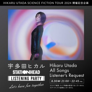 8/30(金) 21:00〜 Stationheadにて「みなさまのリクエスト曲」で行うリスニングパーティーが決定。 2024.08.26 TOPICS 8/30(金)21:00〜Stationheadが開催決定。 今回は「Hikaru Utada All Songs Listener’s Request」 ツアーファイナル前夜祭として ファンの皆様のリクエスト曲のみのお祭り回! ぜひご参加ください。 参加はこちら>> ※チャットでは現在開催中のツアーに関するネタバレについてご配慮宜しくお願いします。