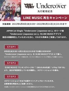 2022年6月8日(水)0:00配信開始 ~ 2022年6月21日(火)23:59までの間に VERIVERY「Undercove (Japanese ver.)」を《LINE MUSIC》にて聴く。