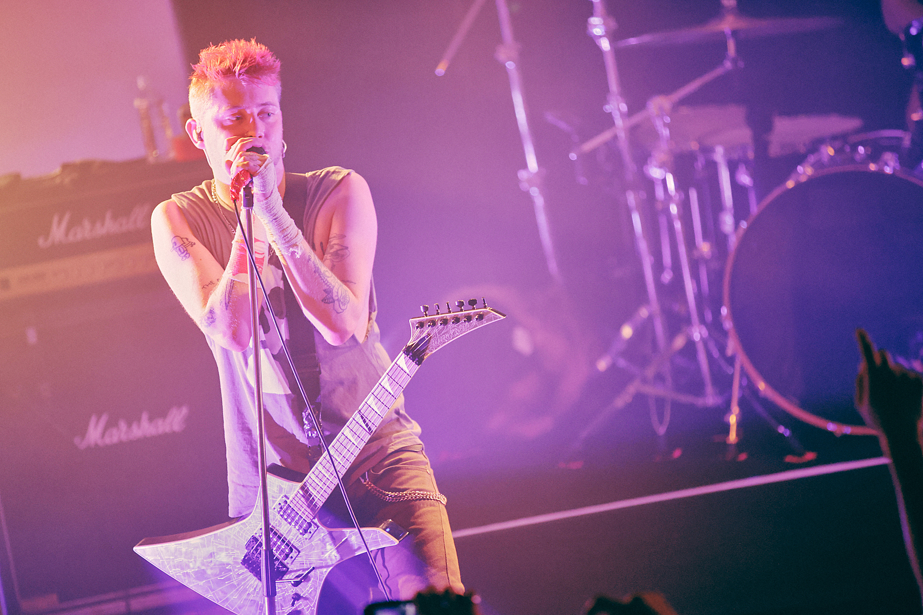 「Feral」を挟んで、ライヴもいよいよ佳境に突入。昨年8月に発売された『EXPLICIT: THE MIXXXTAPE』日本盤にのみ収録された、まさに日本のファンのために用意された1曲「Circle Pit」が繰り出されると、そのタイトルどおりフロアに大きなサークルピットが完成し、ウォーガズムからの贈り物に対して最良の形で感謝を伝える。続く「Outrage」でもその熱気は引き継がれ、グルーヴィーなリズムとニューメタル然としたサムのギタープレイ/フレージングが独特の音像を作り上げる。そして、ミルキーが改めて観客に向けて感謝の言葉を送ると、ダンサブルなレイヴ・チューン「Do It So Good」でライヴの盛り上がりは最高潮に到達した。