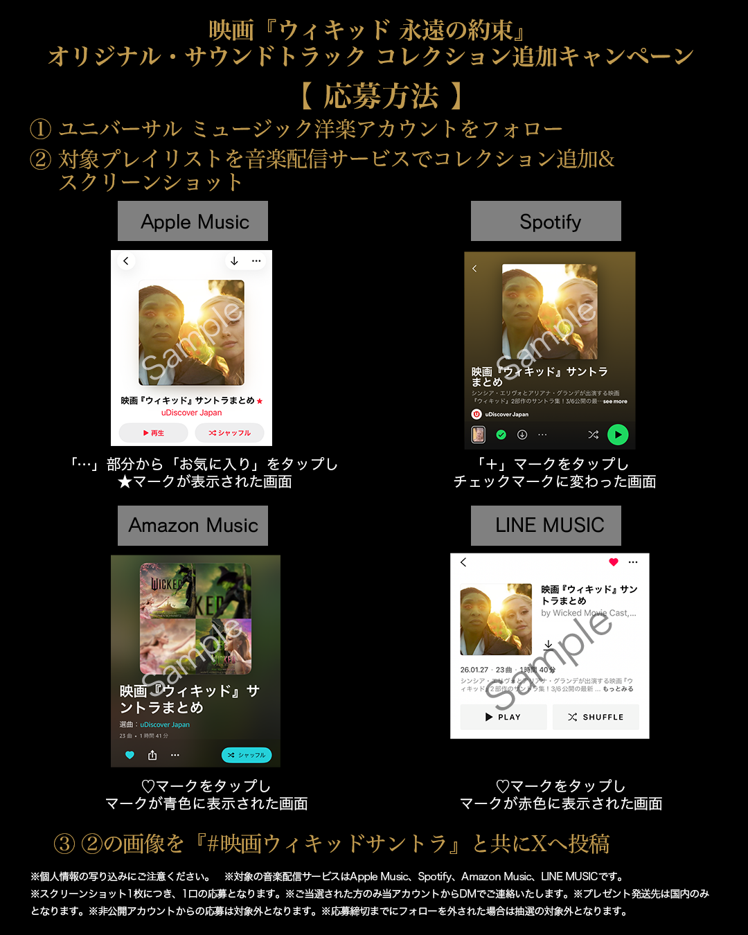 ③ ②の画像を『#映画ウィキッドサントラ』と共にXにポスト