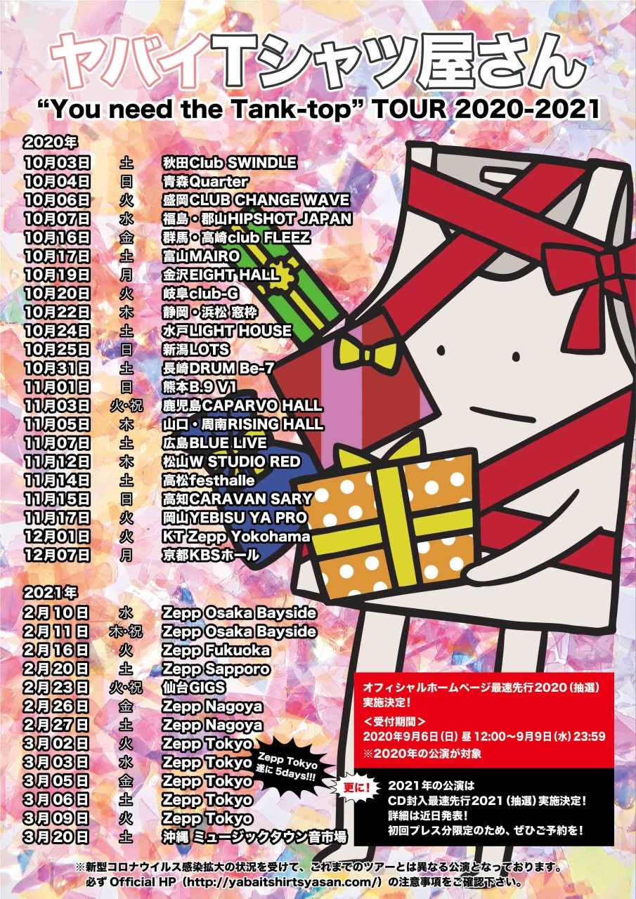 全国ツアー「ヤバイTシャツ屋さん ”You need the Tank-top” TOUR 2020-2021」開催決定!