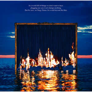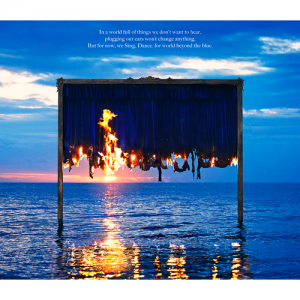 「朝を迎える湖に、青い緞帳。その幕の端に火がつき燃え始めることによって、緞帳の幕が上がっていきます。夜が明けて新しい1日が始まる、そして、その先の向こうへ・・・そんな新章の幕開けを暗示しているかのような美しいジャケットデザインが完成しました。実際に撮影して頂いた静かな湖に、エモーショナルな存在である炎が組み合わさることで、わたしたちの音楽性にもリンクしているのではないかと思います。ぜひメジャー・ファースト・アルバム『Beyond The Blue』を手にとってみてください。」