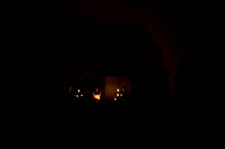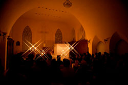 途中ゆっくりとキャンドルが点灯し始め、薄く照らされた教会は幻想的な雰囲気、それに合い混じる安田のうた声、そして寄り添うように優しく奏でられるアコーステックギター。